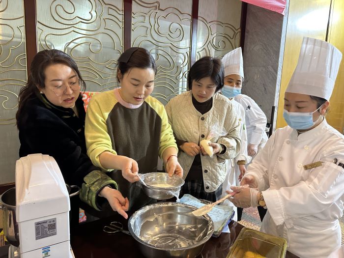 烘焙活動開始后,烘焙廚師向大家講解了烘焙知識和甜品制作流程以及此次活動主要制作的蛋糕、餅干的操作要領。隨后,女職工們在糕點師傅的示范和指導下,自己動手體驗。兩個多小時的活動,使女職工們從繁忙的工作中解脫出來放松身心,不僅學會了甜點的烘焙技能,傳遞了節日的祝福,還提升中心女職工生活技能和生活品位,營造了健康、和諧、積極向上的節日氛圍,強化了合作交流溝通的意識和集體歸屬感,進一步激發女職工不斷提升素質、立足崗位的熱情,在豐富中心文化內涵的同時,展示女職工良好的精神風貌,促進企業和諧發展。