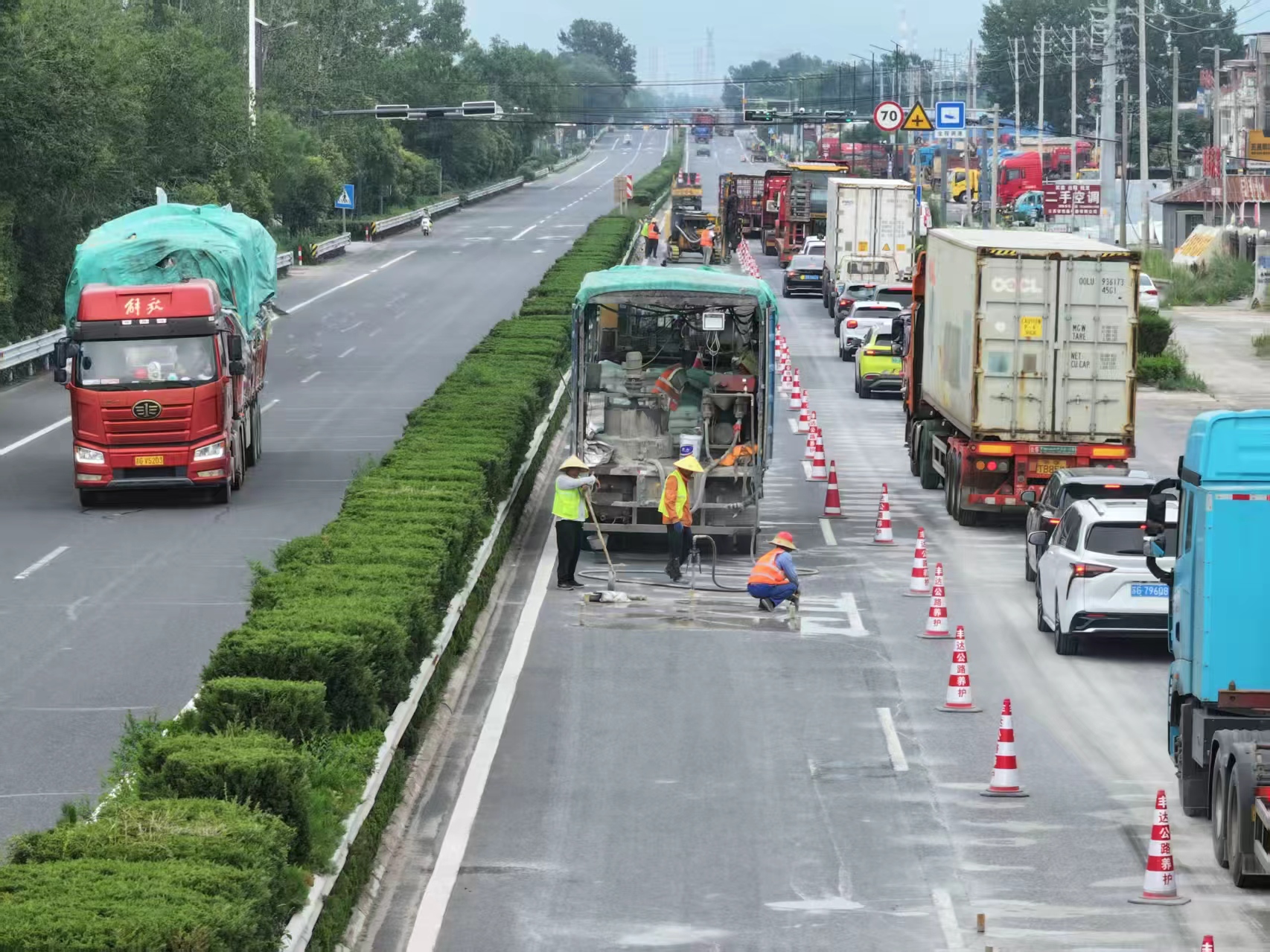2025年連云港市國省道預防性養(yǎng)護工程啟動之初,傳統開挖式養(yǎng)護工期長、交通影響大的問題成為項目“痛點”。公司工會聯合董入龍創(chuàng)新工作室成立專項攻堅組,董入龍帶領團隊翻閱數十份技術資料,多次赴外地考察先進工藝,最終鎖定“低聚物注漿技術”這一突破口。為攻克技術應用難關,工作室牽頭組織5場專題培訓,邀請行業(yè)專家現場指導,董入龍更是扎根施工一線,手把手教職工掌握注漿壓力控制、材料配比等關鍵要點;針對施工中遇到的路基沉降不均問題,他帶領團隊反復調整注漿參數,優(yōu)化施工流程,將原本需要7天的工期壓縮至4天,不僅實現“快養(yǎng)護、少擾民”,還大幅提升路面結構穩(wěn)定性。經檢測,養(yǎng)護路段承載能力提升25%以上,得到交通部門與市民的高度認可。