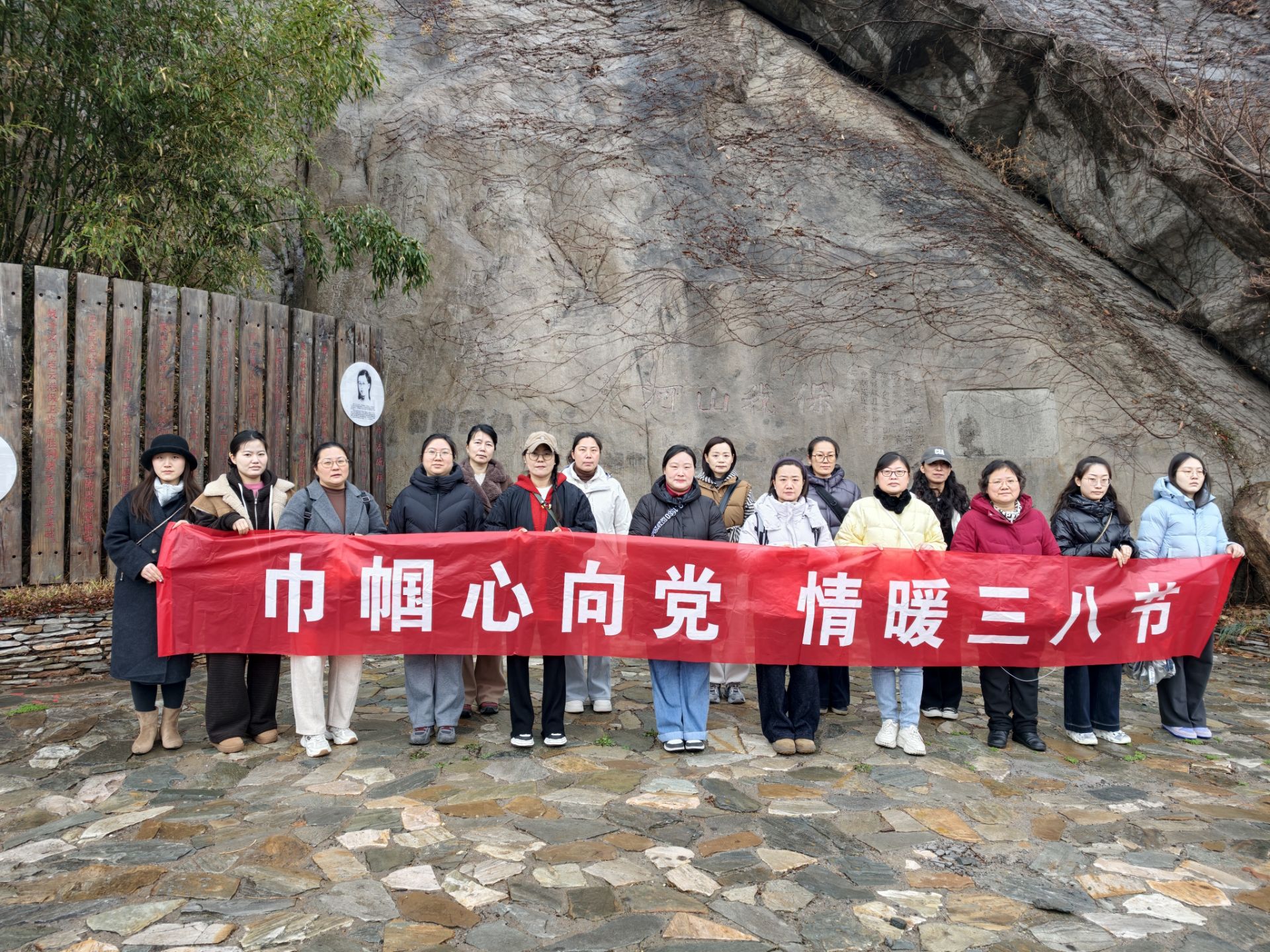 首先大家來到在云臺山區域保存的抗日石刻,石刻上字跡間猶帶硝煙,真實反映了抗日戰爭初期中國守軍的悲壯歷史與不屈斗志,聽了講解員細致生動的講解后,女職工們對這段凝固于山石間抗戰歷史與民族精神有了深刻的感悟。