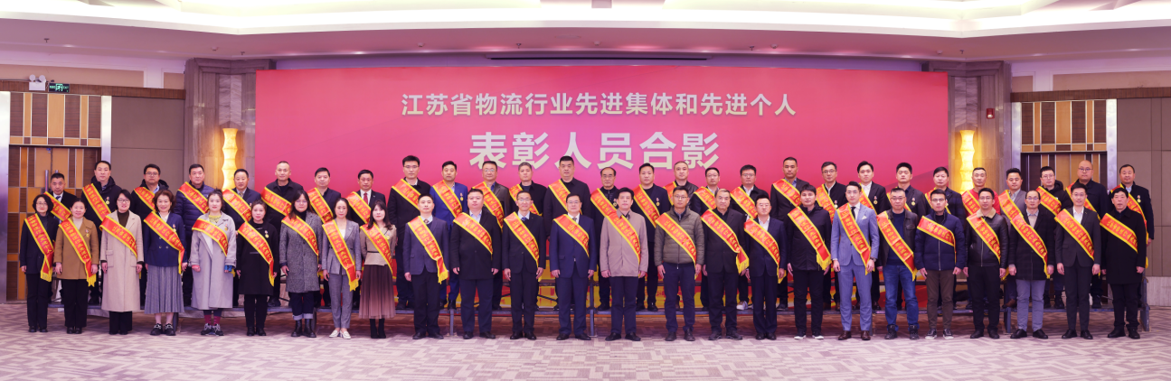 大會現場為獲得“江蘇省物流行業先進集體和先進個人”“2022年度江蘇省重點物流企業30強”“2022年度江蘇省級示范物流園區10強”等稱號的代表授牌。物流集團副總經理、工會主席劉超代表物流集團接受“全省物流行業先進集體”獎牌。