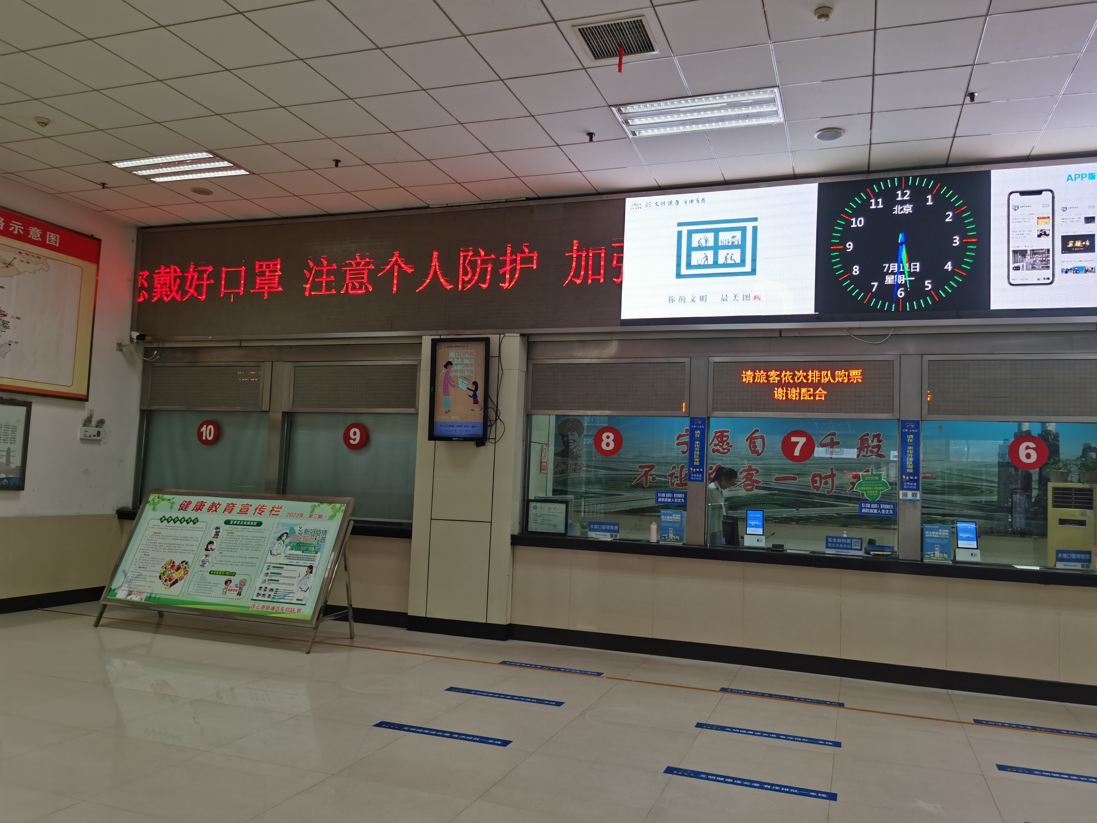 為全力做好疫情防控工作,新浦汽車總站成立了疫情防控領導小組,并與市疾控部門建立常態化聯系機制,及時掌握疫情動態。同時對自助售取票設備、飲水機(熱水器)、乘客及行包安檢設備、候車廳座椅、樓梯(扶梯)扶手、乘客接觸區域、工作人員接觸區域等每天2次進行消毒;候車室每日 2~3 次,每次20~30 分鐘通風換氣,在衛生間放置洗手液供旅客使用。落實“三不進站、六不出站”安全管理規定,讓旅客放心進站、安心乘車。