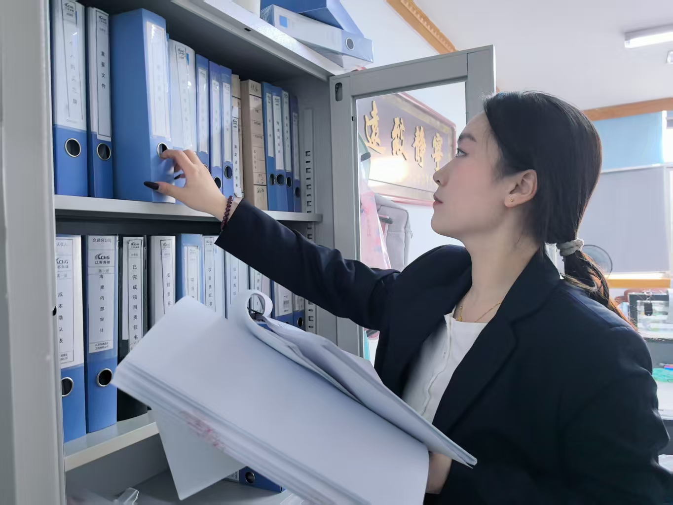 在工作中,她始終秉持嚴謹細致的作風,全面負責內業技術資料編制、項目合同編修及管理、工程結算及付款等核心工作,同時承擔日常通訊報道報送等任務。每一份資料、每一項數據、每一份合同,她都反復核對、精心打磨,將基礎工作做細做實、做深做優,為工程順利推進筑牢堅實基礎。